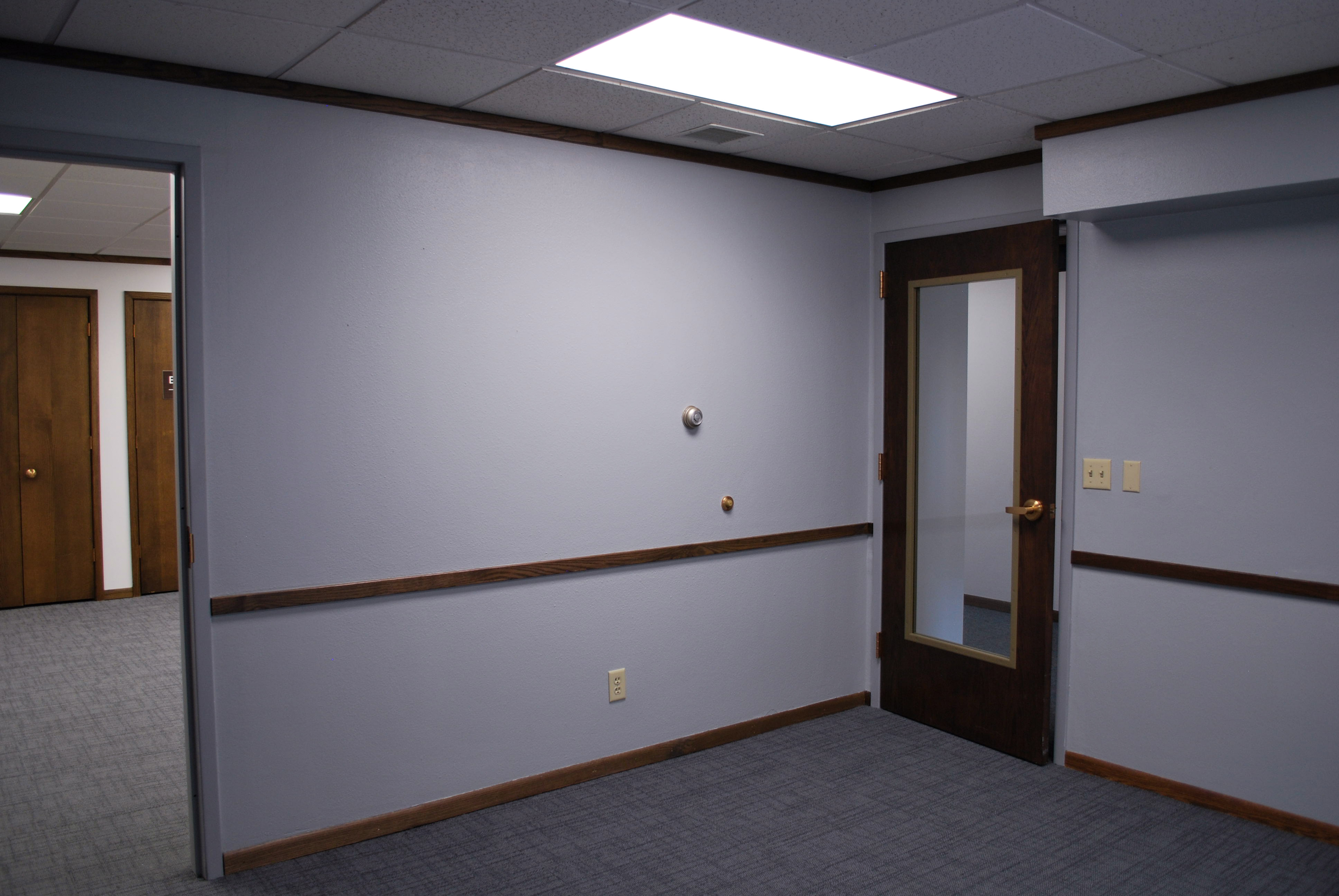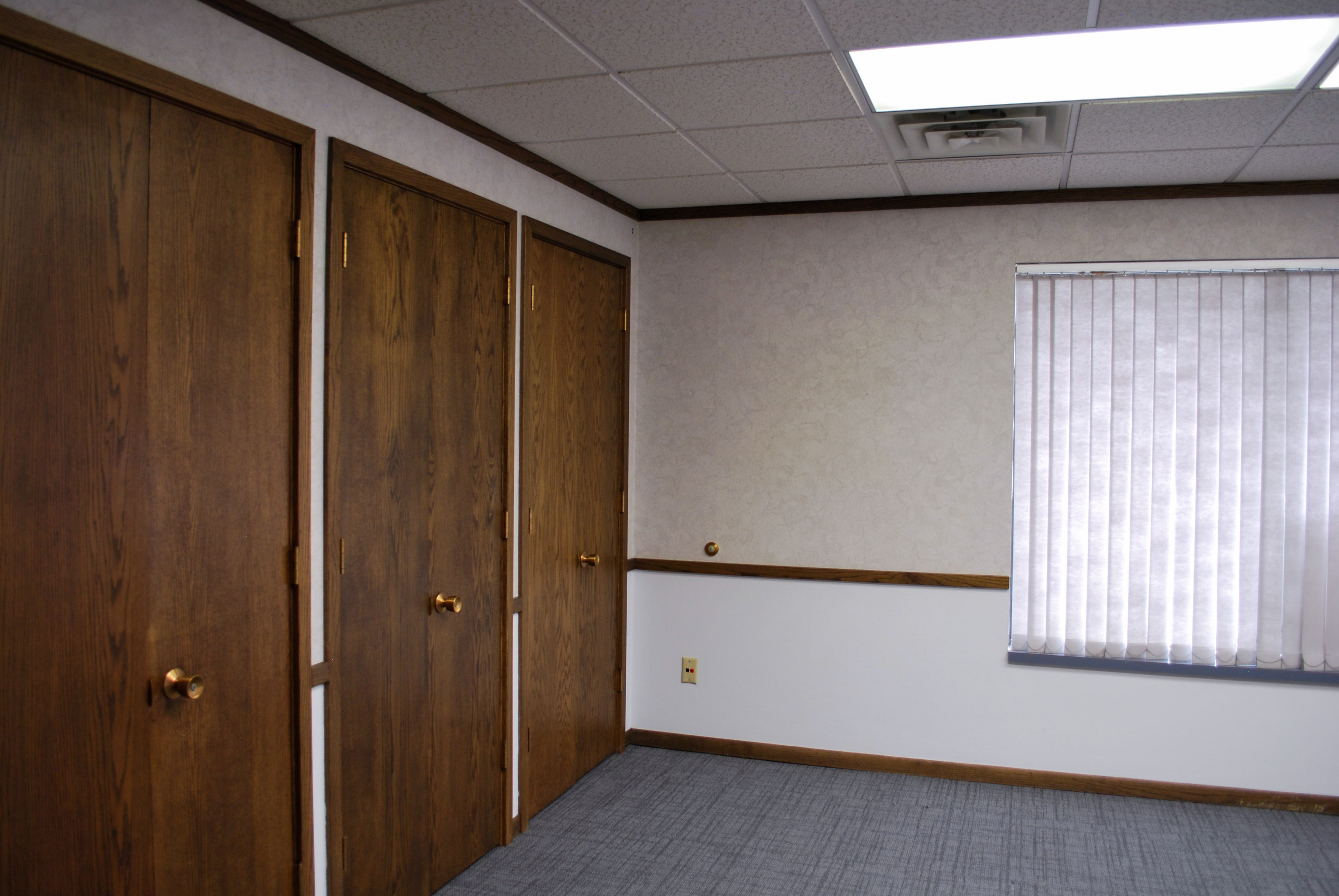 This office suite is located right off the main stretch of University Avenue. It shares a building entrance and main hallway with 4 other suites, and is located at the back right of the building. The unit itself has a front entrance that opens into a large lobby/reception area with plenty of closet storage space. Located down a hallway to the right are 3 large offices, one of which has even more extra closet storage. Off the lobby to the left are 2 more offices, one with more closet storage, and the last with a separate back entrance that opens to the building’s shared bathrooms, kitchenette, and back building exit.